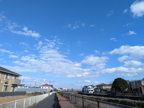 A sky view of the new year at Karabori riverside, Higashimurayama City, Tokyo, JAPAN