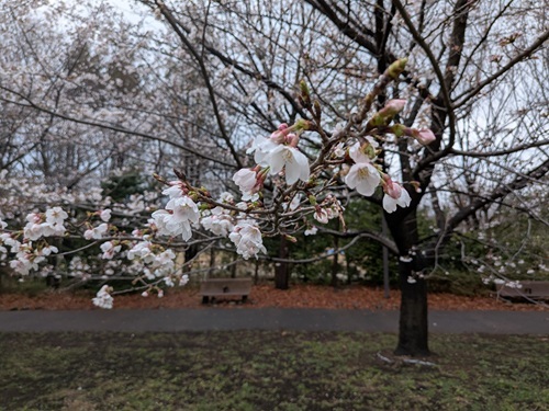 Cherry Blossoms drenched in the rain, Higashimurayama City, Tokyo, JAPAN
