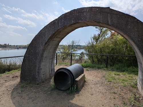 多摩湖畔にある「排水路トンネルの遺跡(1923年に建設され、近年堰提が改修された時に発掘されたもの)/ A part of the tunnel for drainage canal, a heritage of the modern civil engineering, Tama-ko Lake, Saitama Prefecture |