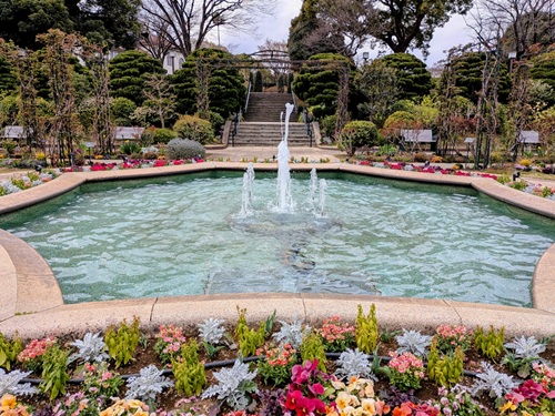 横浜港の見える丘公園山頂の花壇に囲まれた噴水 / the fountain surrounded by flowerbeds in Minato-noMieruoka Park, Yokohama |