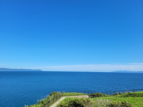 啄木一族の墓所から見晴らす津軽海峡大森浜 |