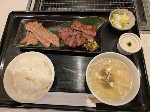 旅行初日の夜はアーケード街の店で牛タン定食を一人飯。美味だった! |