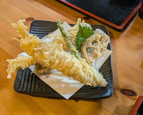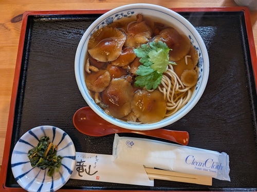 蕎麦屋「竜山」で地元名物のなめこそばを注文。 |
