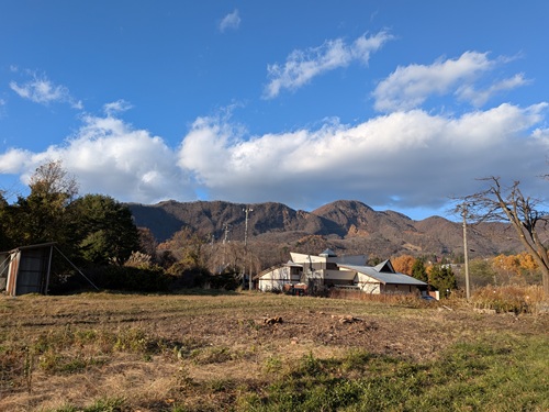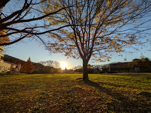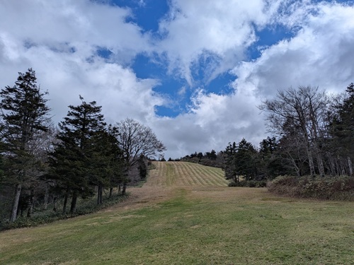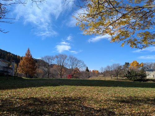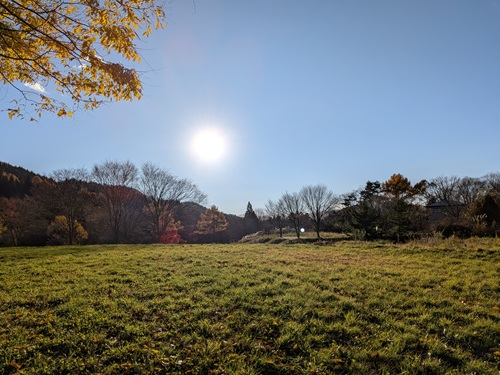 投宿する宿「蔵王四季のホテル」前の野原。 |