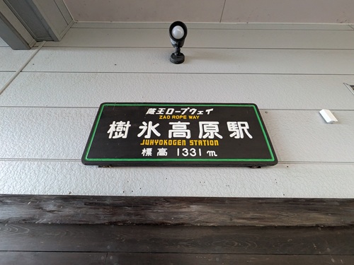 駅舎のプレート。標高1331m地点と銘記されている。 |