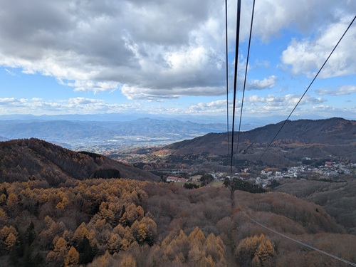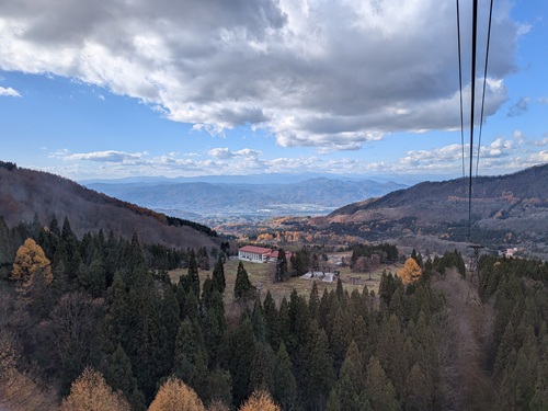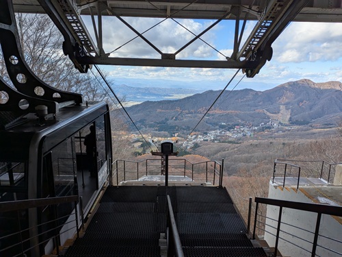 「樹氷高原駅」から麓へ向かうロープウェイ。 |