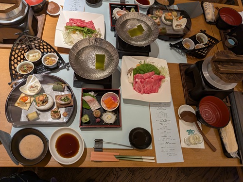 数々並ぶご馳走のうち、右端のお釜の中に芋煮がグツグツ言っていた。 |