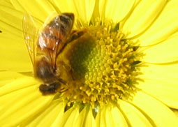 霜月は菊の月。至る所に菊の花群れが出現する。花に惹かれて側によると、既に先客がいる。蜂たちは冬を前に食糧を備蓄するのか、それとも子どもを育てるのか、故なく女王の命令で盲目に働いているのか、せわしなく蜜を吸う。よく見ると蜂の姿の精巧・巧妙な作りに感嘆する。花と虫の密約を目撃したようで、思わず引き込まれてしまった。花粉だらけになりながら、蜜を吸う蜂。いっぱいに開いて虫を誘う花。長雨のあとで、晴天は自然の贈り物。冬到来前の絢爛のシーズン。 November is a month of chrysanthemums. You can find the flowers everywhere in Japan. If you approach them attracted by the beauty of flowers, you are sure to find bees there. They are working hard inside of chrysanthemums. I wonder what they are doing. Are they collecting honey to make the stock for winter, to feed babies, or just following the order of theri queen? I watch them closely and am impressed with the elaborate and delicate building of their body. I am fascinated with them, feeling I am observing the secret relationship between flowers and insects. Bees are powedered with pollen while sucking honey. Flowers are wide open to allure insects. After the long rain, the sunny sky is a special gift of the nature. It's a gorgeous season before winter arrives. |