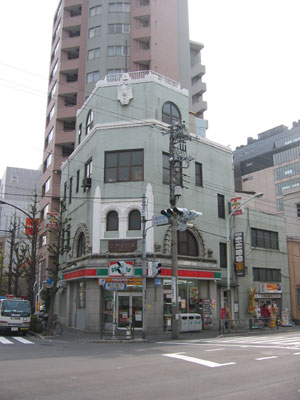 春日通り、モダン建築の「さかえビル」 A mdern archtecture, Sakae Building in a corner of Kasuga Avenue