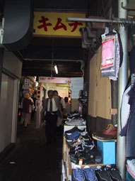 アーケードの下に出ているテーブルで、立ったままビジネスマンもうどんやそばをかき込む。安くてうまけりゃ文句なし。
