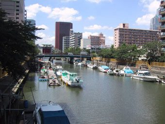 月島橋から釣り船を見る Fishing boats seen from Tsukishima Bridge |