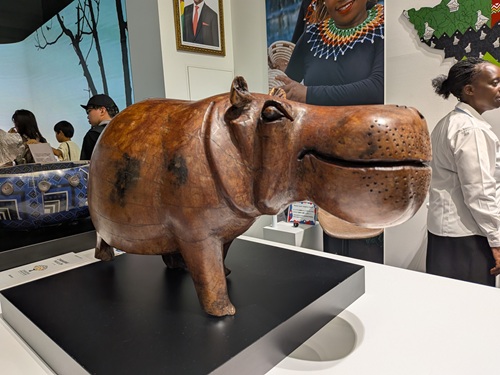 ジンバブエからやって来たカバの彫刻 (万博会場内コモンズ-Bにて