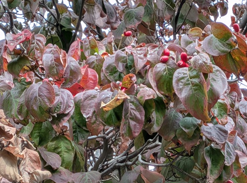 柿の実り/A persimmon tree loaded with fruit |