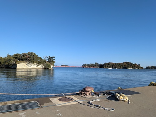 朱塗りの橋でつながる福浦島を遠望する松島湾 / A view of Matsushima Bay, Miyagi Prefecture |