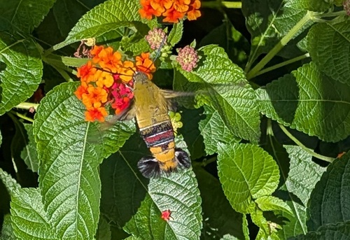 庭の「ランタナ(Lantana)」の花に寄って来たオオスカシバ/ a pellucid hawk moth which came to Lantana in a flowerbed